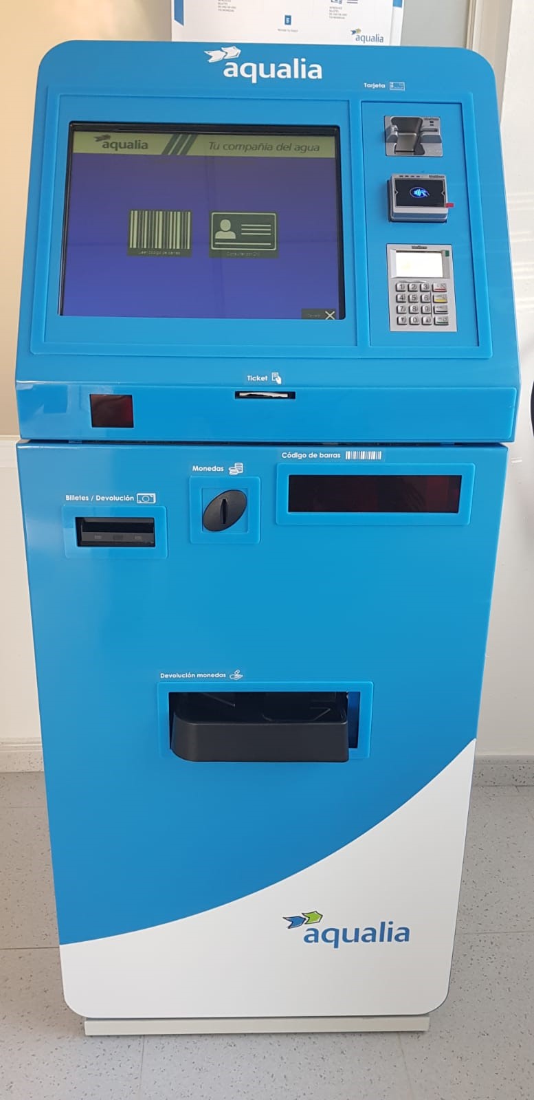 Con este cajero Aqualia promueve la agilización de las gestiones del cliente en la oficina y pretende acortar los tiempos de espera.