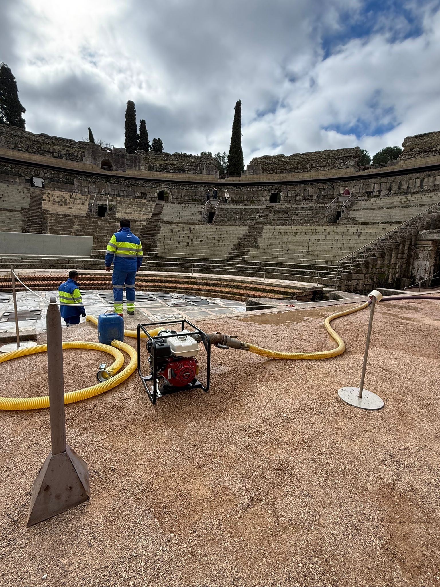 Los trabajos, coordinados con el Consorcio de la Ciudad Monumental de Mérida, han consistido en la extracción controlada del agua acumulada mediante equipos de bombeo de última generación y conducciones temporales específicamente diseñadas para operar en entornos delicados. Toda la actuación se ha desarrollado siguiendo estrictos protocolos de protección arqueológica, respetando al máximo tanto la estructura original romana como las directrices de conservación vigentes.