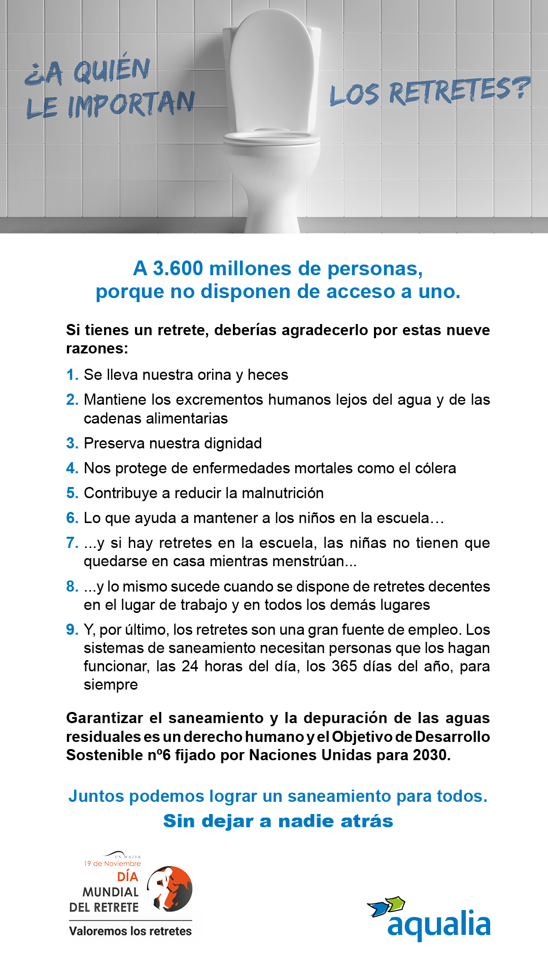 En el Día Mundial del Saneamiento, el Ayuntamiento y Aqualia animan a valorar la disponibilidad de un correcto sistema de saneamiento y a usarlo correctamente por el bien común.