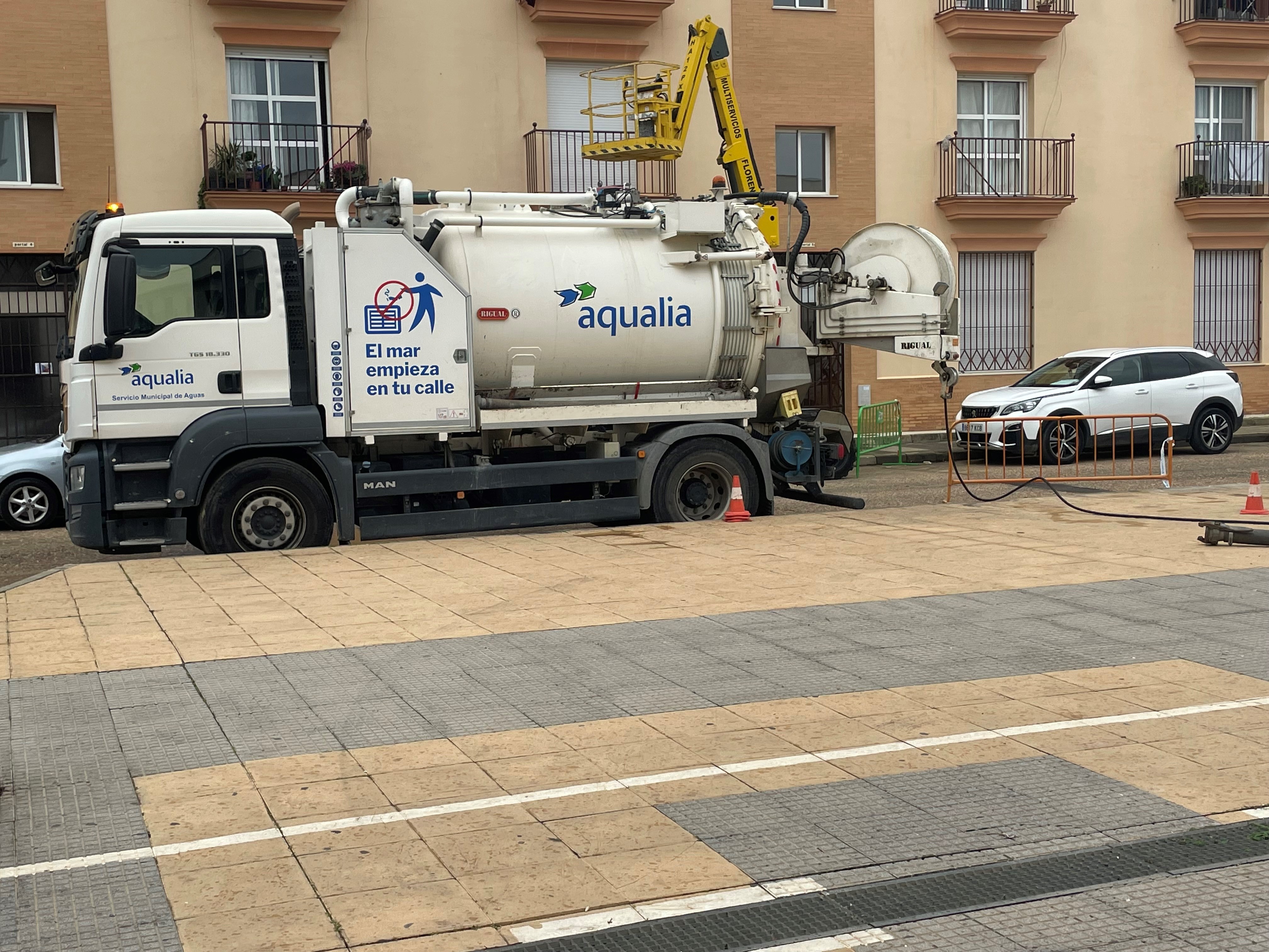 Aqualia realiza estos días un plan especial de limpieza de imbornales y tuberías de saneamiento