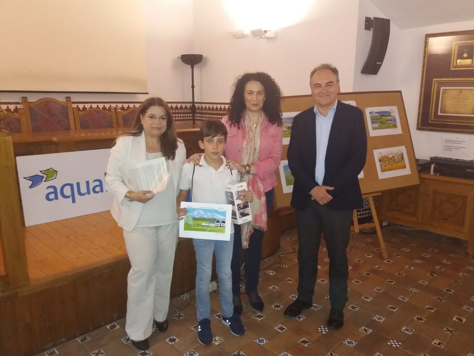 La concejala de Educación de Jaén, Mª Isabel Azañón, el Gerente de Aqualia en la ciudad, Juan Carlos Piñar, y  la jefa de Gestión de Clientes, Anabel Ruiz, han hecho entrega esta tarde de los premios correspondientes a la 16ª Edición del Concurso Digital Infantil que la empresa gestora del Servicio Municipal de Aguas ha lanzado en torno al microsite www.aguaparagrifus.com. La intención del certamen ha sido poner en valor el trabajo que representa llevar el agua desde la naturaleza hasta el grifo.